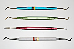 技工関係ばかりだったので一般診療用の器材も YDM社製レジン用インスツルメントとGC社製レジンナイフです インスツルメントは遙か昔、自分が大学生だったときに購入したです 正直歯科の大学は実習用器材として結構モノを買うように指示され 無駄な買い物をさせられた気になったりもしたものですが このレジン充填器は実践で色々試した中でも逸品でした ただ、レジンナイフはGC社のを使ってます 刃こぼれしずらいです |