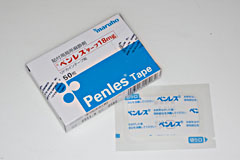 今回は表面麻酔の材料です 歯科はご存じの通り「麻酔して、削って、詰める」という作業が大きな割合を占めます 麻酔注射はいつの世でも嫌われ者です だからといって麻酔無しで削っては痛いばかりで仕方がありません で、麻酔注射の刺入時の痛みを出来るだけ軽減する「表面麻酔」があります 以前から塗るタイプの表面麻酔薬を使っていたんですが、主成分がベンゾカインで、注射薬はリドカインを使ってますので2種類のアレルギーのリスクがあるな、と思っていたところ、最近「ペンレス」というリドカインが主剤の貼るタイプのモノに変更してみたところ、なかなか良さそうなのでご紹介します 手順は塗るタイプと全く変わりありませんが、透明なので表面麻酔が奏功しているときはすこし粘膜が白っぽくなりますのでちょっとわかりやすいです、垂れてこないので苦くなりずらく、効きが良いような気がします テープ自体は口腔内で使用するには大きすぎますので、これを穴あけパンチで円状に切り取って使ってます 表か裏か分からなくなりやすいので注意が必要です これを使ったうえで、注射の針は33ゲージを使い麻酔をしてます、が、それでも痛いっていう時もあります ま、いろいろと書いてみましたが表面麻酔はやっぱり表面だけのハナシです、麻酔の痛い痛くないは刺入位置と注入時の圧力のかけ方と時間の取り方、それと麻酔をする箇所の粘膜の状態に依りますね 日々研鑽です Penlesって、Penlessか、Painlessか、Painlesじゃないんですかねぇ、、もともとはワイス・レダリー社の製品なので本場のスペリングなんでしょうけど日本人の語の略し方と微妙に違う気がします、painが大母音推移したのが先祖返りしてるのか?それともレダリー社の世界展開戦略の為の発音の平易化か?固有名詞に見る異文化ですかね |