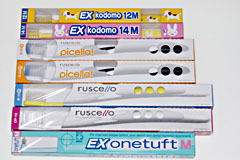 歯ブラシです 左の写真、上から DentEx Kodomo12M 子供用 DENT.EX kodomo 12 混合歯列(乳歯と永久歯の混じった状態、一番不衛生になりやすい時期)に磨きやすい 丸いハンドルで持ち方を問わない DentEx Kodomo14M 子供の歯を保護者が仕上げ磨きする用 DENT.EX kodomo 14 ネックが細くてヘッドがコンパクトで見やすい 直視して的確に磨けるように毛が短くしっかりしている picella B-20S コンパクト歯ブラシ やわらかめ ルシェロ ピセラ B20 M/S かなりコンパクトですみずみまで磨きやすい やわらかめはあまりオススメしていないです picella B-20M コンパクト歯ブラシ ふつう ルシェロ ピセラ B20 M/S かなりコンパクトですみずみまで磨きやすい 皆さんから好評です ruscello B-10M 歯ブラシ ふつう ルシェロ B−10 M ふつうの歯ブラシです ふつう ruscello OP-10 歯ブラシ やわらかい ルシェロ OP-10 1本 特に柔らかいです 清掃効率が不安なほど柔らかいので常用には向かず、腫れてるとき、外科処置後などに DentEx onetuftM ワンタフトブラシ DENT.EX ワンタフト歯ブラシ1本 矯正器具 孤立歯 根面板 など普通のブラシで磨きづらい所に 下の親知らず周辺に物が詰まるのも清掃しやすい |