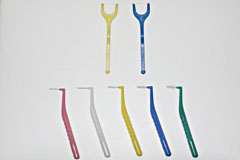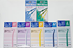 歯間ブラシ・フロス類です。左の写真、左上から DentEx ウルトラフロスM DENT.EX ウルトラフロス(3本入り) これオススメです、歯間ブラシよりずっと手軽に出来ます DentEx ウルトラフロスS DENT.EX ウルトラフロス(3本入り) 特に歯と歯の間がきつい人にのみ良いです、Mサイズが入らない人向け 下段一番左から DentEx 歯間ブラシSSS DENT.EX 歯間ブラシ 4本入り 通過穴径0.7mm〜 ワイヤー径0.23mm かなり細いです、技術革新の成果ですね DentEx 歯間ブラシSS DENT.EX 歯間ブラシ 4本入り 通過穴径0.8mm〜 ワイヤー径0.25mm DentEx 歯間ブラシS DENT.EX 歯間ブラシ 4本入り 通過穴径1.2mm〜 ワイヤー径0.25mm DentEx 歯間ブラシM DENT.EX 歯間ブラシ 4本入り 通過穴径1.5mm〜 ワイヤー径0.3mm DentEx 歯間ブラシL DENT.EX 歯間ブラシ 4本入り 通過穴径2.0mm〜 ワイヤー径0.3mm |