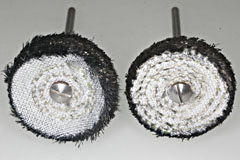 研磨とは己を磨くこと とは昔誰だったかに言われた言葉ですが、、まぁ、皆さんあまり好きなことではないんでしょう で、かくゆう自分もあまり研磨にロマンを感じる方では無いので、いろいろ楽に研磨できる方法を模索しているのですが、此処に至って、決定的なツールを発見しました 左の写真のバフホイールなんですがこれが秀逸極まりないので御紹介します どれ有限会社アイデント化学工業製のUZU F1pro とUZU F1proレジン それにG2 です これに同社の研磨剤ウルトラマルチスーパーファインを付けて使用します UZUって何か珍妙なネーミングですが、2番目の写真のように渦状にバフを縫い合わせてあり、バフ外周部が良い感じに堅いのです、よって使い込んだシャモアホイールのような力を掛けた研磨が出来るわけです 使い方としては、ビックポイントまで研削してから、UZU F1pro にスーパーファインをたっぷりめに付けてすこし低速で、力を込めるようにして研磨します、もうこれだけでだいぶ研磨できますが、そしたら次に UZU F1proレジンにスーパーファインを少量つけて中速で軽く研磨します、かなりの鏡面になります、その次はG2にスーパーファインをほんの少量、付けなくても良いくらい、付けて高速で曇りを取っていく 良い感じに研磨できることでしょう バフ研磨は研磨材の微小粒子をバフが保持して、回転させることにより、運動エネルギーを与えて被研磨物に衝突させることによって削っていくことなので回転半径が大きければそれだけ運動エネルギーが大きくなり、効率が増すわけです このウルトラマルチスーパーファインは研磨材の微小粒子が、はじめは大分大きめな形をしており、衝突することによりより小さくなっていくので、荒研磨時は低速で、押しつけるように使用すると傷が取れる、押しつけることによりバフがすこし変形して被削物の凹凸を無くしていく、速度を上げて軽く研磨すれば微小粒子はかなり小さくなってキメの細かい研磨が出来る というメカニズムみたいです 難点としてはたかがバフなのに一枚1000円くらいする所ですかね、バフとしては法外な値段設定ですが、御布施しておきます それと、平滑面だけです、凹凸のあるところはバフでは当然磨けませんので、ロビンソンブラシなどはやはり必要です 金属を研磨したらそのバフはレジンでは使えなくなるので注意ですかね 自分は義歯のレジンは水ヤスリとレーズでやってますので関係ないのですが、併用はできません |