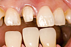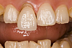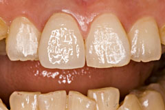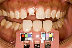 トーンジャンプしないように16bit色空間でやると良いかもしれませんがjpgではできないので自分はやってません。 マシンパワーが余っていたらtifでやるとより良いかもしれません。 で、それでも決めかねるときはこの画像を見るときに目を細めます、 細めるとシェードガイドとコピペした画像との境目が無い場所がきっとあるはずです この時はたしか、、C1をベースと考え、オペークはA3を2:1くらいに調色 | デンティンはC1で、カットバックをかなり多めにしてエナメルにE-3とT-Glassを3:1くらいにした気がします 結構前につくったんで、、 上顎前歯部で透明感を強調しすぎると、暗い不健康な色合いになりますんで、暗くならないように加減します、 まぁ、入れてみないと何とも言えないですけどね、、 と言いつつもセットした写真が見あたらないので、ここまで 2010/07/31 ポーセレンラミネートベニア 2009/10/18に山本貴金属社においてのポーセレンラミネートベニアの作成講習会を受講したので その覚え書きを記す これが完成形