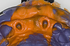 コバルトクロム鋳造床の作成 普段は外注しているコバクロ鋳造床を作成、安定的なレシピができたようなので覚書を記す いろいろ調べても細かいトコロがわからないのでポイントを記録しておく ![]() 作業用模型に金属床外形がわかるようにリリーフを28ゲージシートワックスで施す 捨て線も デュープリコーンとCDフラスコで複印象 手練り プレッシャーポットで加圧するとより良い 耐火模型製作 複印象はCDフラスコを外してCDインベストメントを注型 CDインベストメントが標準分液比でも非常に粘張で重い 粉200g 手早く手練り30秒 真空練和30秒 プレッシャーポットで加圧するとより良い 硬化したらマルチコート塗布 加熱150度5分 模型基底部の角をトリマーして外埋没材でかかえるように ワックスアップ 上顎キャストプレートだと正中部に肉厚部として1mmくらいになるようにシートワックスとスティップルシートを圧接 薄い所は遠心鋳造なら0.5mmくらいまでか フィニッシングラインはΦ25か32のラインワックスで成形し、湯道となるように スプルーはフィニッシングラインとポストダム以遠 レスト付近の肉厚部にΦ32 補助としてスケルトン部と湯周り悪そうなところにΦ20 外埋没はスノーホワイトをスーパースピード 90mm特大鋳造リングでライナー2重巻 粉500g 埋没40分で常温の炉に投入 2時間かけて200-250度に到達したら400度に昇温して1時間係留 その後920度まで昇温また1時間係留 酸素都市ガスバーナー 酸素圧力は0.4MPa 大量溶融ノズルL ガスを出してから 酸素を開ける まず一段内炎が出て燃焼音はうるさくなる そののちもう一段酸素を開くと燃焼音がよりけたたましくなって 内炎が明瞭なマルチコーンになるのでマルチコーンが1cmになるように 今回はCoCr日本歯科金属ダンコバルト硬質ショットタイプで60g スプルーが多いのでかなり多め 出来上がりは26gだった かなりオーバーヒートめに融解 ショットの方が体積に対しての表面積が多いので溶かしやすい 坩堝を揺さぶって酸化被膜は破れないで1塊の溶湯になるようにしたらリングを出して手早く鋳込む 炎の照り返しで左手が熱くなる 軍手したほうがいいかも?遮光メガネ必須 バーナーはガスを一気に閉じるとパン音せずに消せる カータイプの横型遠心鋳造機 巻数は4 カウンターウェイトは最大 回転がおわったら電源を落としたファーネスに入れて除冷 赤みがなくなったらファーネスの扉を半開にする 掘り出しにはフラックスハンマ できるだけ押し湯は叩かない やってみて実感するのは、、スーパーキャスコムとかのコバルトクロム用鋳造機でやったほうがラクで歩留まりが良く安全そうだということ お代が頂けるなら外注ですね、、しかもこのあとのスプルー切断・研磨もめっさタイヘンですし、、やるなら充分に納期を見ておくべき なお上記手順を実行しての事故、不成功などの不利益は一切当方では関知いたしません 2017/06/27 シェードテイク 補綴物の作成で色が合わなくてどうにも困ったりする事があります まぁ大体はシェードテイクに失敗してるわけですが、、、 患者さんの歯の色をどうやって記録して、技工物に再現するかってのが問題になります 記録するところまでは歯科医師の仕事ですね ちょっと最近良さそうな方法を見つけたので、覚え書きを記す ![]() VITAのクラシカルシェードガイド全部を入るように一枚撮っておく、 | 今回は上顎左上2から右上1にかけてのブリッジの製作です。 テンポラリーはA2で色が白すぎですね ![]() 作成する歯牙のお隣さんの歯の中央部を黒線で囲って、その範囲をコピーして、180°回転させてから、シェードガイドの上に貼り付ける。計16個です。 | この画像を見ながら色を決めます ![]() それでもまだ判断に迷うときは、画像全体のトーンカーブをすこーし落とすと、色が出てきます。 |